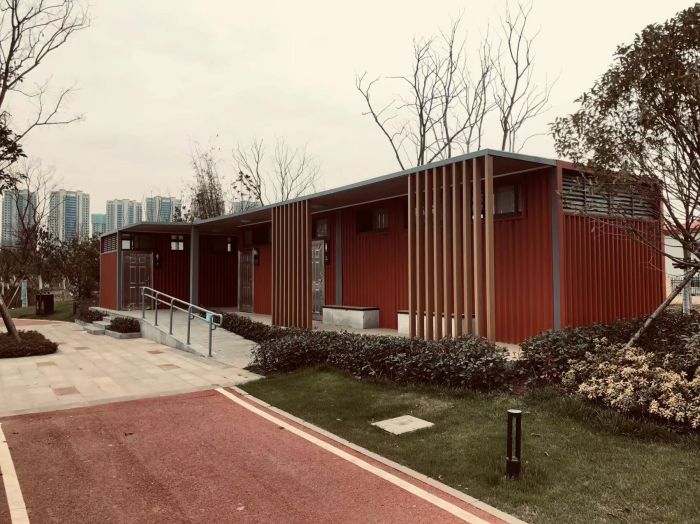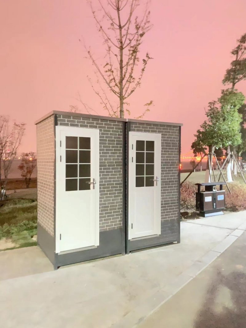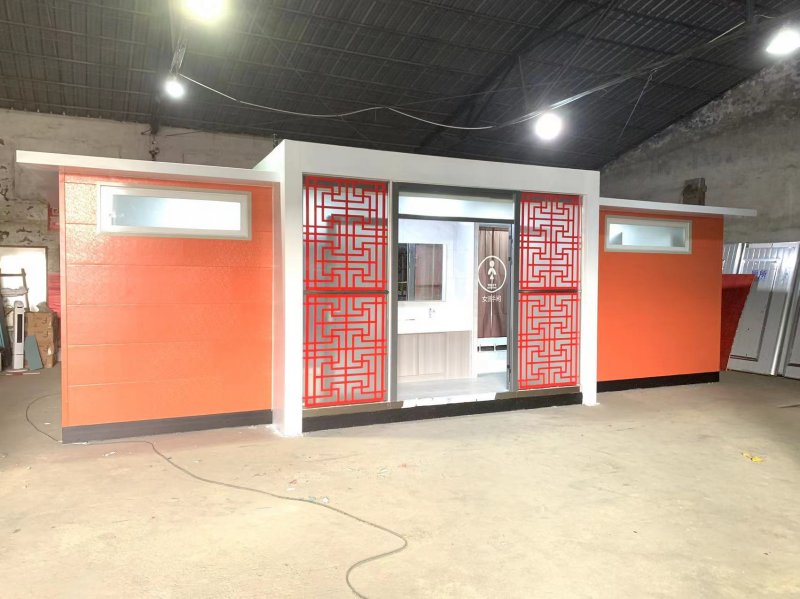 拼裝廁所;在廠里做好各個廁所部件,再到現(xiàn)場組裝在一齊,適合不易運輸?shù)拇笮蛶_@座箱式廁所,女廁5個蹲位內(nèi)配工具間,男廁2個蹲位+2小便斗,第三衛(wèi)生間由殘疾馬桶、助力洗手盆和兒童馬桶、兒童洗手盆外加嬰兒臺等設施。廁所前后有窗,通風采光,前部走廊裝有屋檐,防雨防曬。此廁所位于公路綠道邊,整體大氣,功能齊全,造型美觀,是一道難得的靚麗景觀!